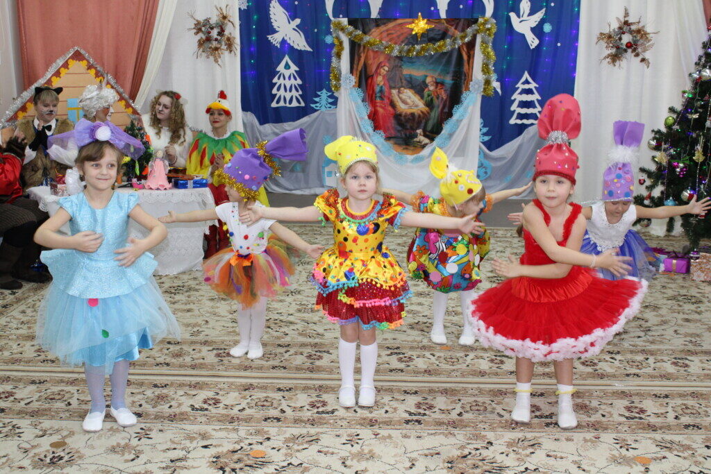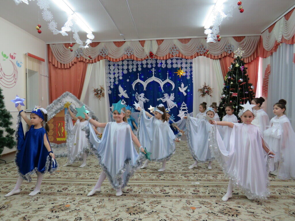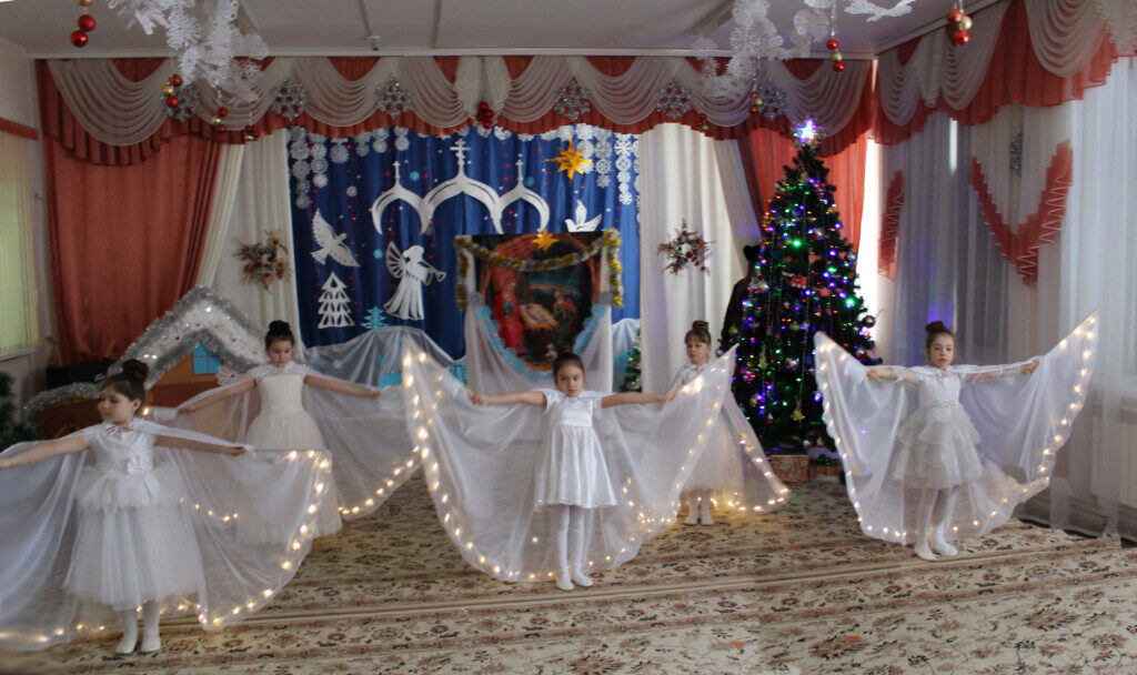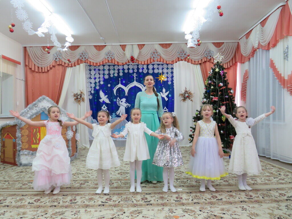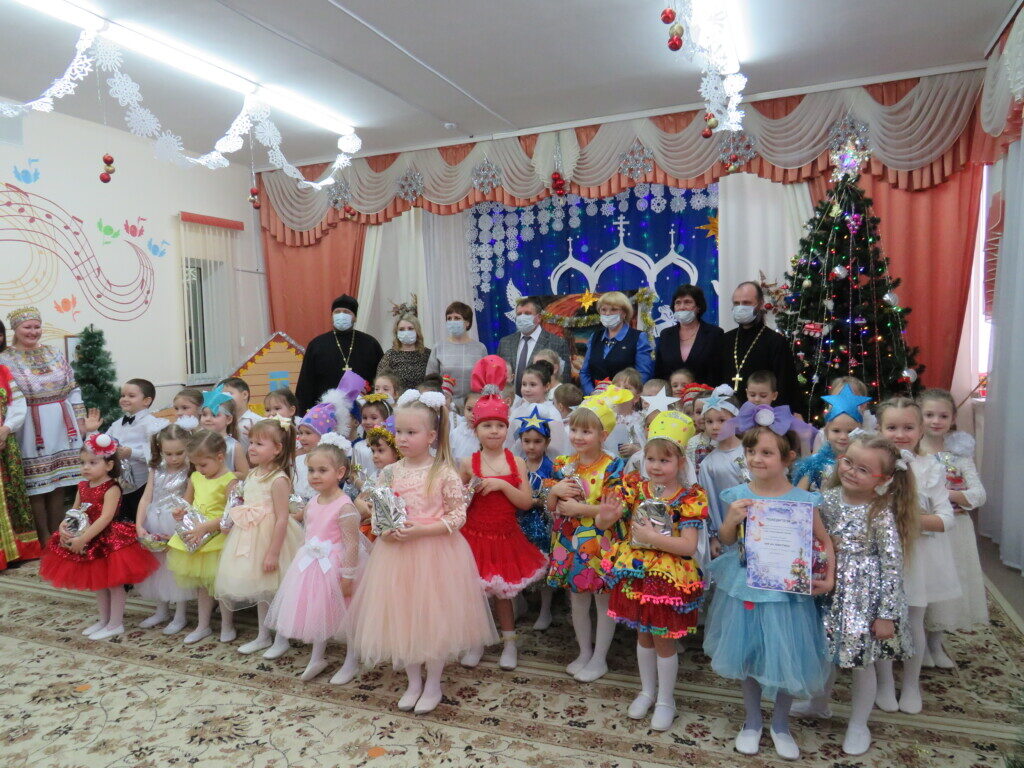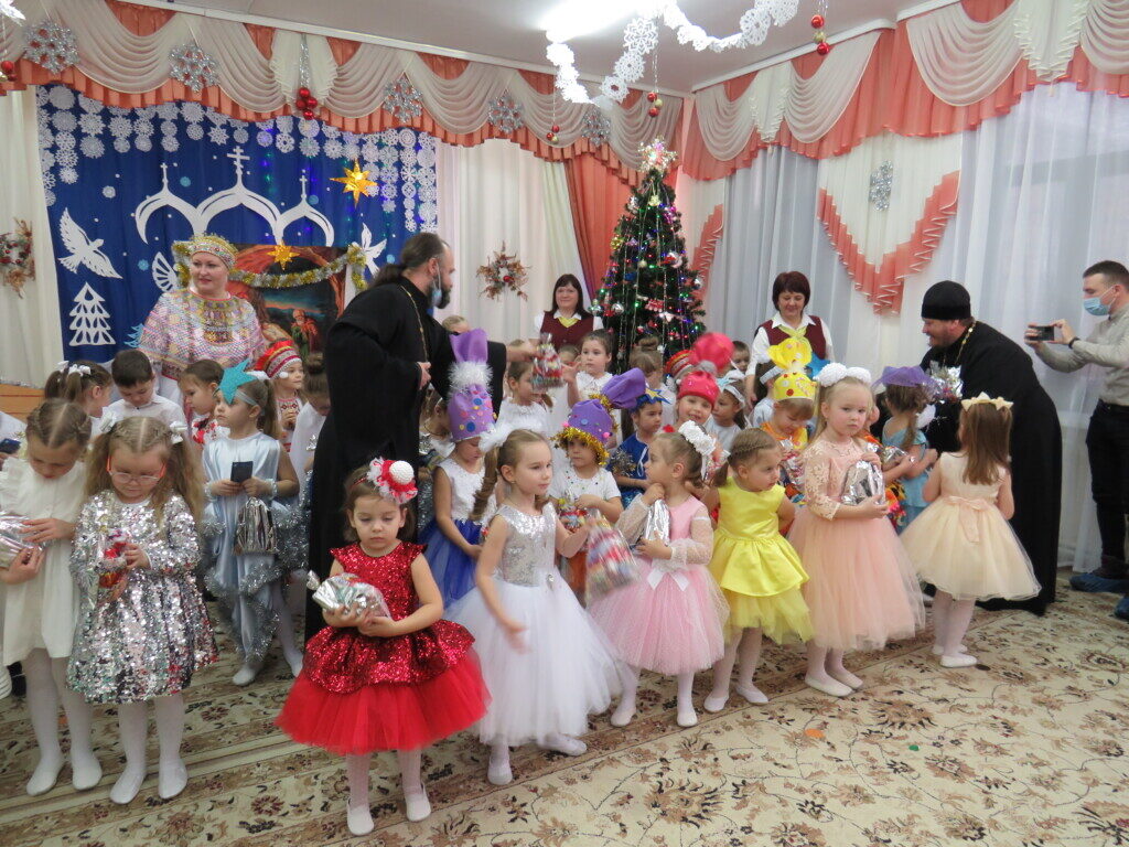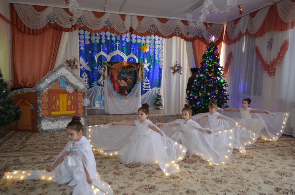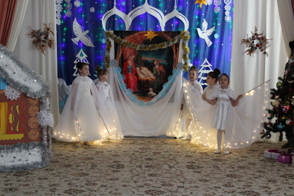 Под пение рождественского тропаря и звон колоколов начался праздник в детском саду, в котором приняли участие дети и педагоги детского сада. Дети, от самых маленьких до подготовительной выпускной группы, радовали собравшихся своими красочными номерами. В зале царила особая атмосфера светлой чистоты и искренности детских сердец. Гости горячо аплодировали юным артистам и педагогам.