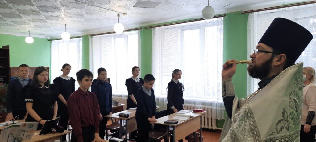 На Рождественских святках 12 января помощник благочинного по миссионерской работе, настоятель храма в честь Рождества Христова иерей Александр Мазур со своим помощником по миссионерской деятельности Рогачевым Василием Алексеевичем посетили школу в селе Троицк.