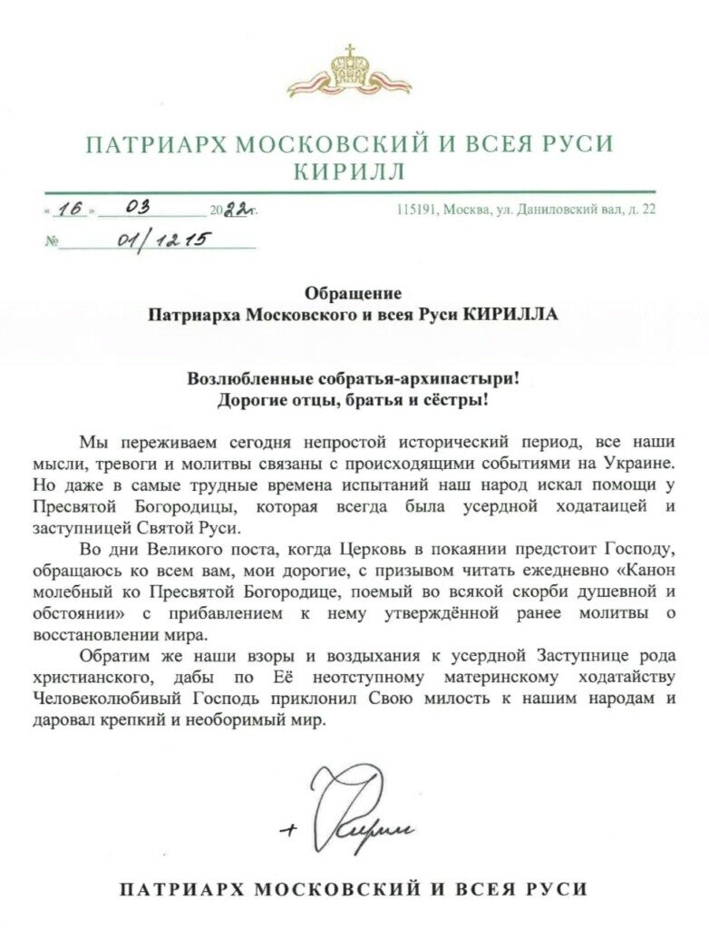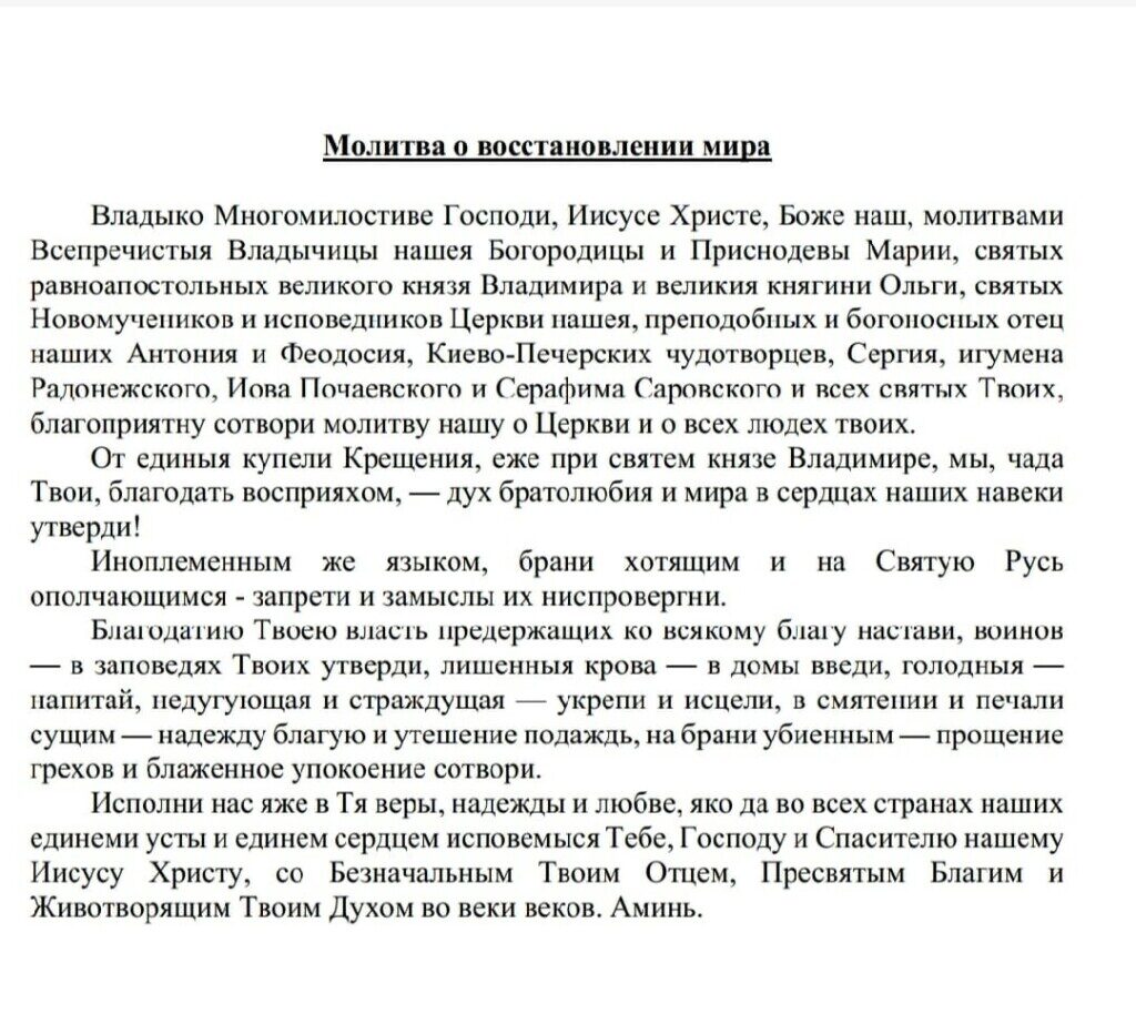 Во дни Великого поста, когда Церковь в покаянии предстоит Господу, обращаюсь ко всем вам, мои дорогие, с призывом читать ежедневно «Канон молебный ко Пресвятой Богородице, поемый во всякой скорби душевной и обстоянии» с прибавлением к нему утвержденной ранее молитвы о восстановлении мира.