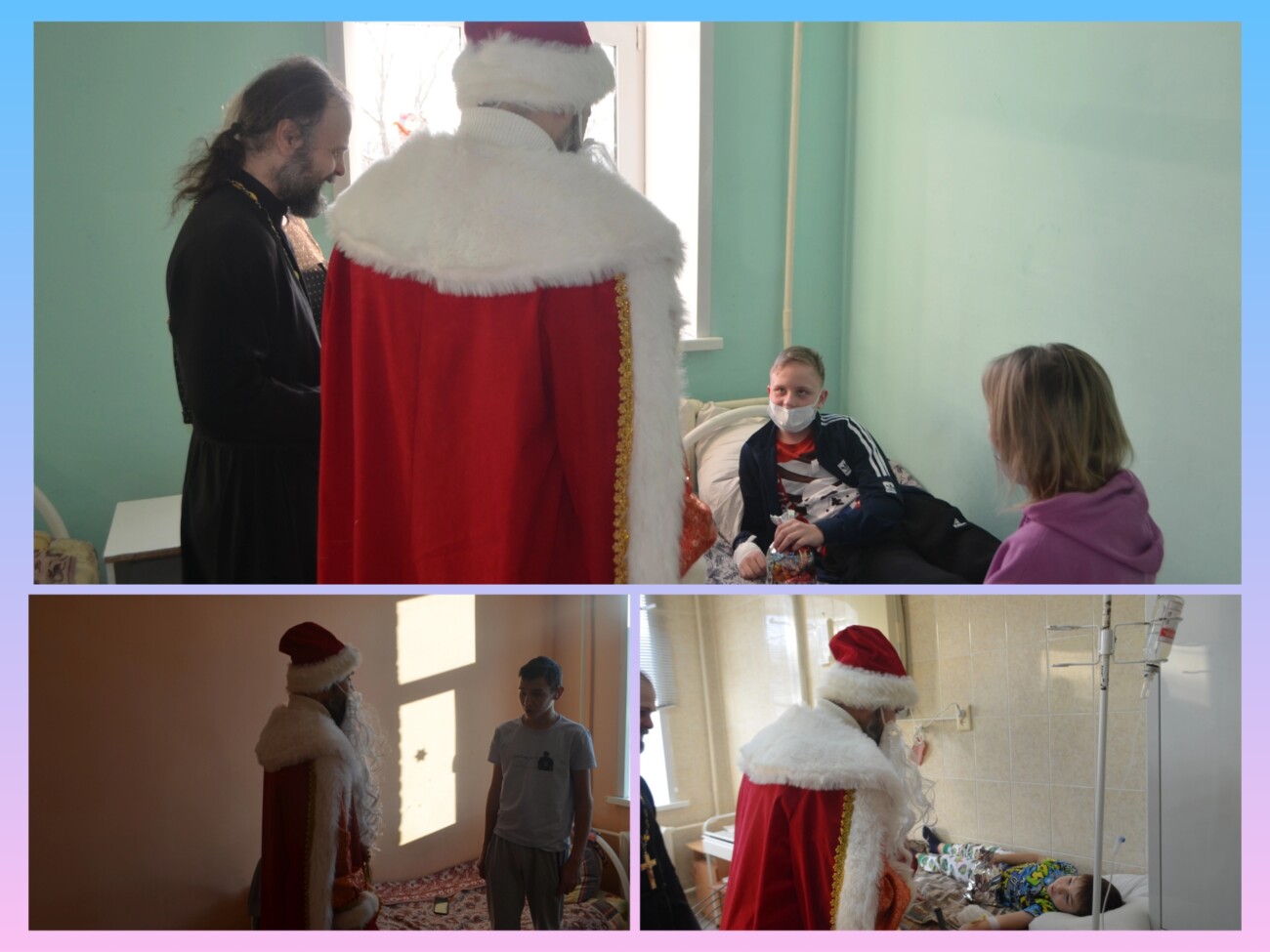 Уже по сложившейся доброй традиции 7 января, в один из главных православных праздников – Рождество Христово, больных деток и родителей, находящихся в праздничные дни в больничных стенах Ковылкинской детской больницы. посетили благочинный 2-го округа Ковылкинского района протоиерей Алексей Покалеев и Дед Мороз с подарками для детей. О. Алексей пожелал детям скорейшего выздоровления, а сотрудникам больницы — помощи Божьей в их нелегкой, но такой важной работе.