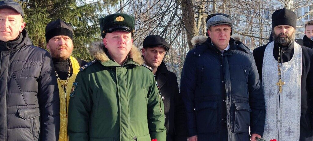 Память военнослужащих, отдавших жизни при исполнении долга, почтили минутой молчания, после чего к поклонному кресту в часовне и у подножья мемориальных плит с именами и портретами погибших воинов-земляков возложили цветы.